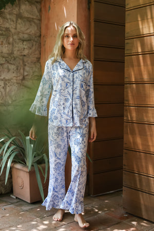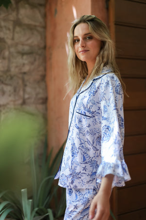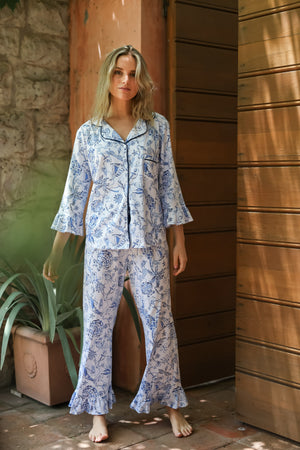 El pijama Sharma es un nuevo diseño que se suma a deMarie. Romántico, con vuelos, y con estilo. Confeccionado con algodón de punto, para darte una mayor suavidad y frescura a la hora de dormir.