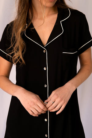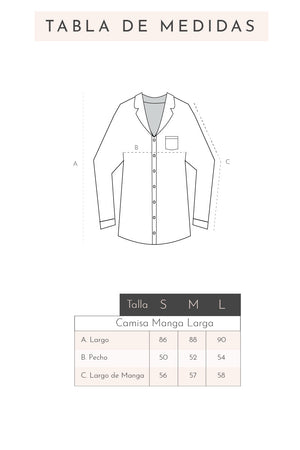 El pijama Aisha es una camisa relajada, cómoda y con un toque femenino al costado. Fue confeccionada con rayón viscosa de punto, para dar la suavidad que necesitas a la hora de dormir.