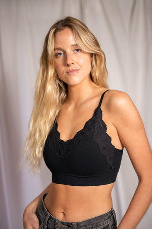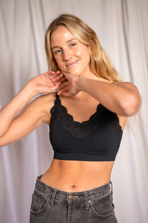 Bralette básico pero con un toque de encaje. Muy suave y cómodo.