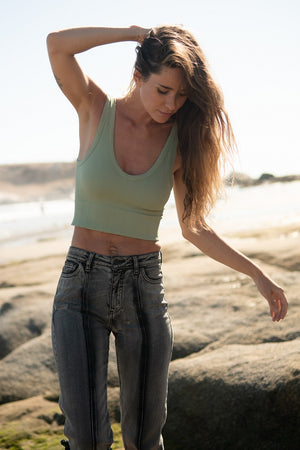 Leandra es un brami grueso que no necesita usarse con bra. Ultra cómodo para usarlo cómo crop top en cualquier outfit.