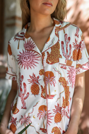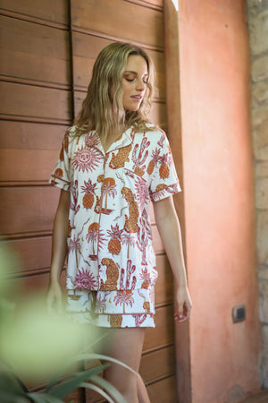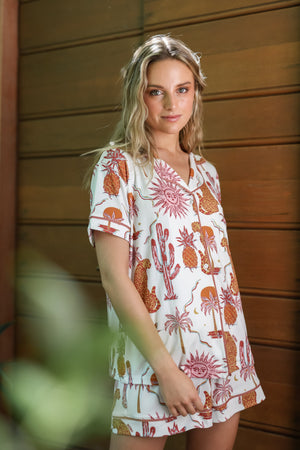 El pijama Kendall se caracteriza por su silueta relajada y cómoda. Fue confeccionado con tela de punto, para dar la suavidad que necesitas a la hora de dormir.