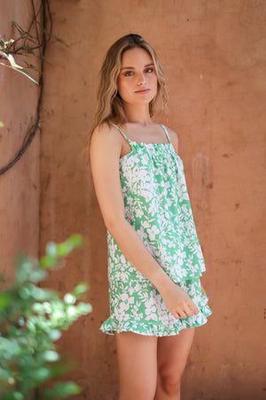 Layla es un conjunto premium, confeccionado con algodón. Perfecto para noches calurosas, con tirantes y sus vuelitos en el short.