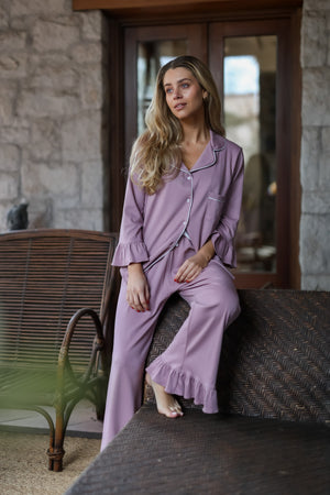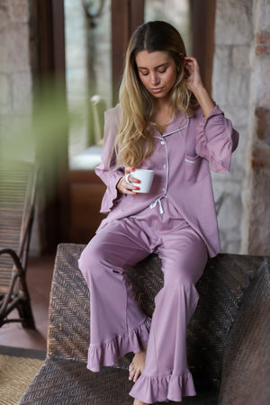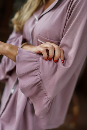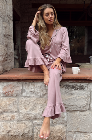 El pijama Sharma es un nuevo diseño que se suma a deMarie. Romántico, con vuelos, y con estilo. Confeccionado con algodón de punto, para darte una mayor suavidad y frescura a la hora de dormir.