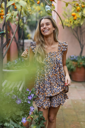 Alba es un conjunto premium, confeccionado con algodón. Lo amamos por sus tirantes y sus vuelitos en el short. Es tan lindo que lo puedes usar para dormir pero también para salir.